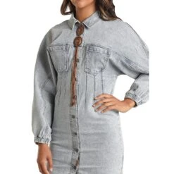 Rock & Roll Cowgirl Ladies Light Wash Long Sleeve Dress WD-3709
