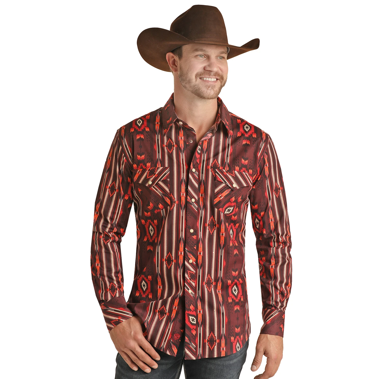 Rock & Roll Cowboy Men’s Burgundy Aztec Snap Shirt RRMSOSRZ1K-62