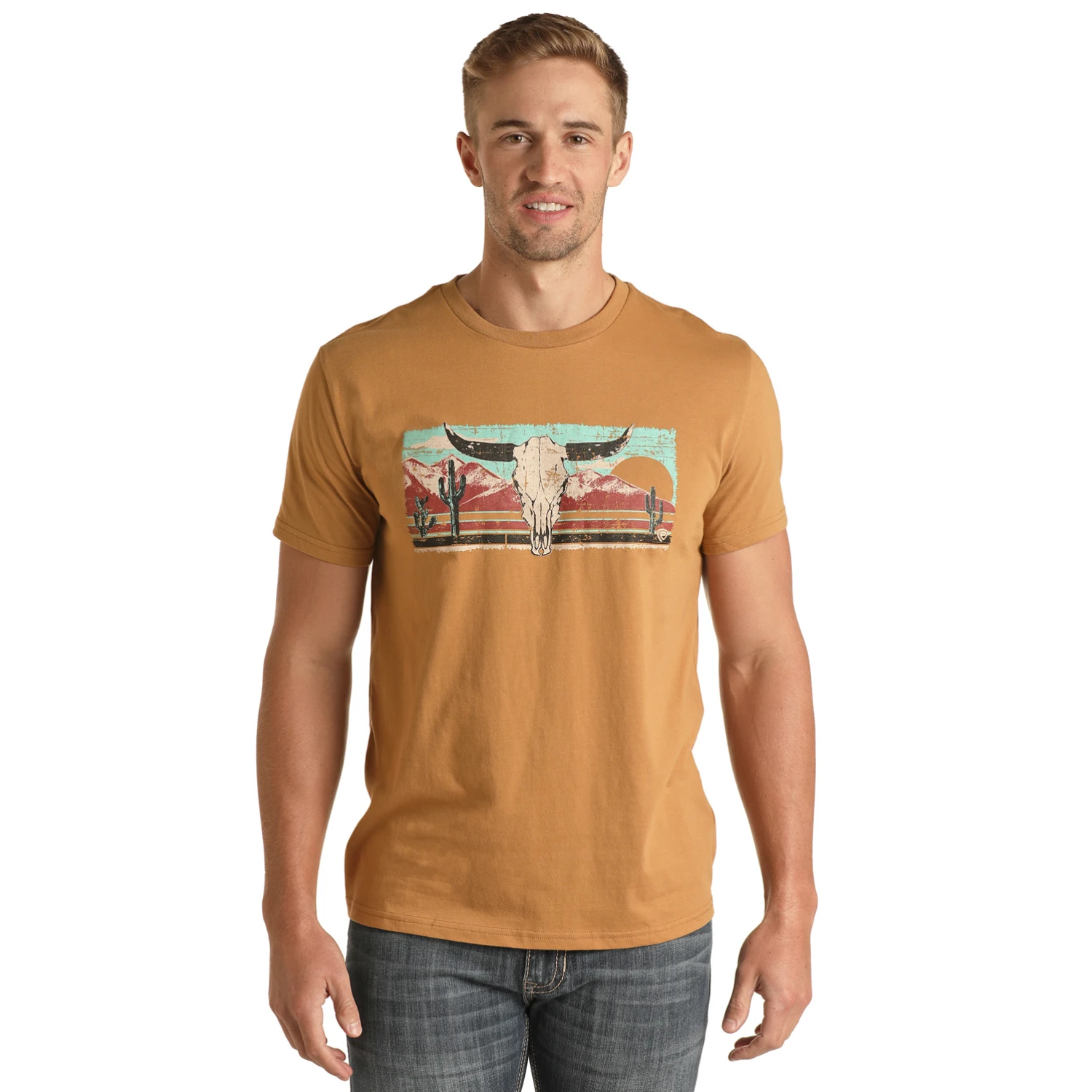 Rock & Roll Cowboy Men’s Western Mustard Graphic T-Shirt RRMT21RZM5-77