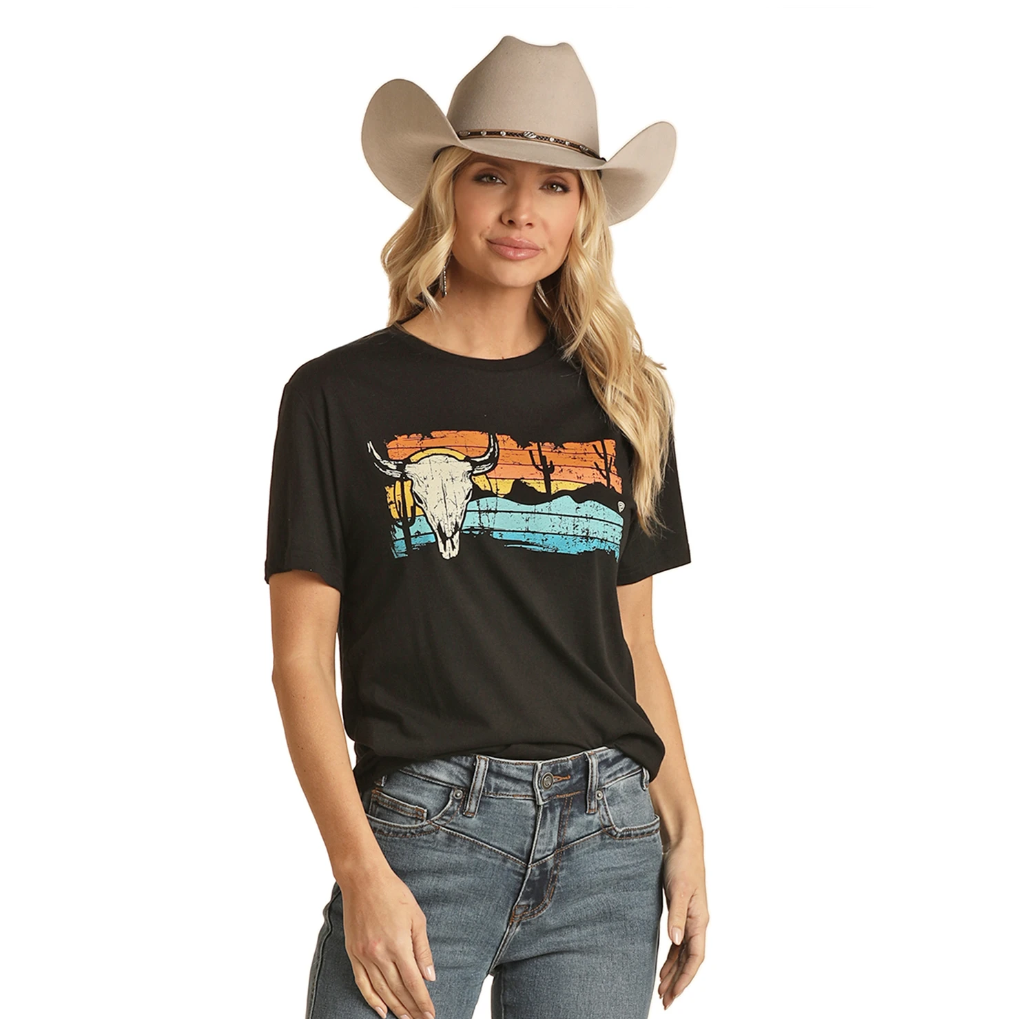 Rock & Roll Cowboy® Unisex Black Western Graphic T-Shirt RRUT21R0IS