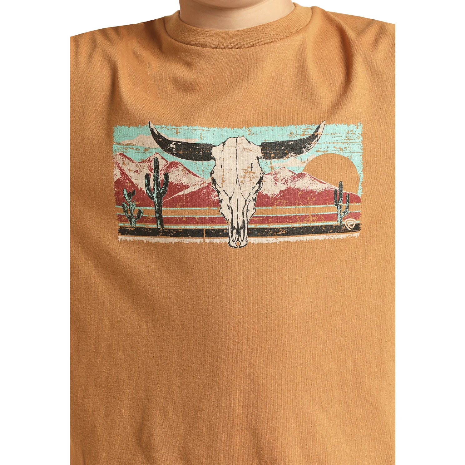 Rock & Roll Cowboy® Youth Boy’s Longhorn Mustard T-Shirt RRBT21RZM5-77