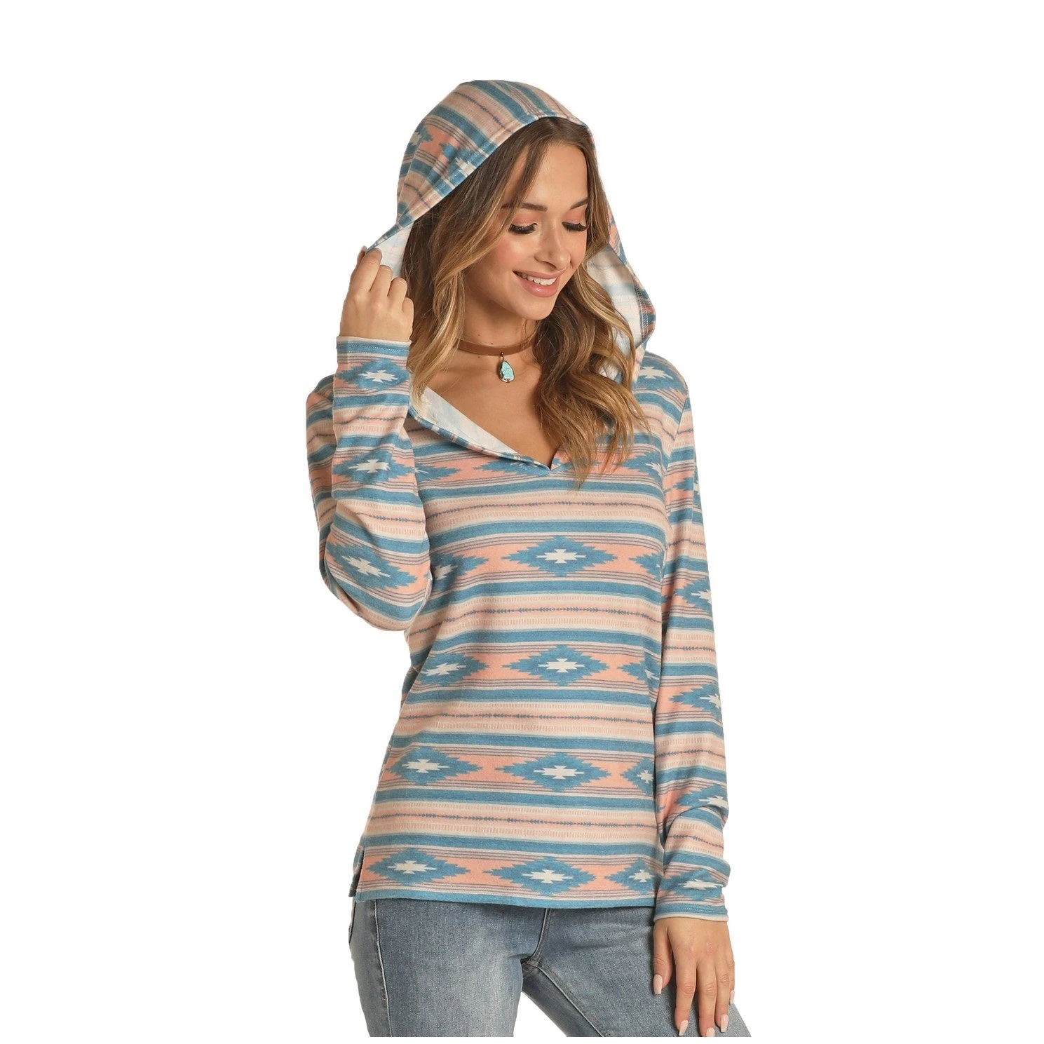 Rock & Roll Cowgirl Girl’s Aztec Print Coral Multi-color Pullover Hoodie 48H8382