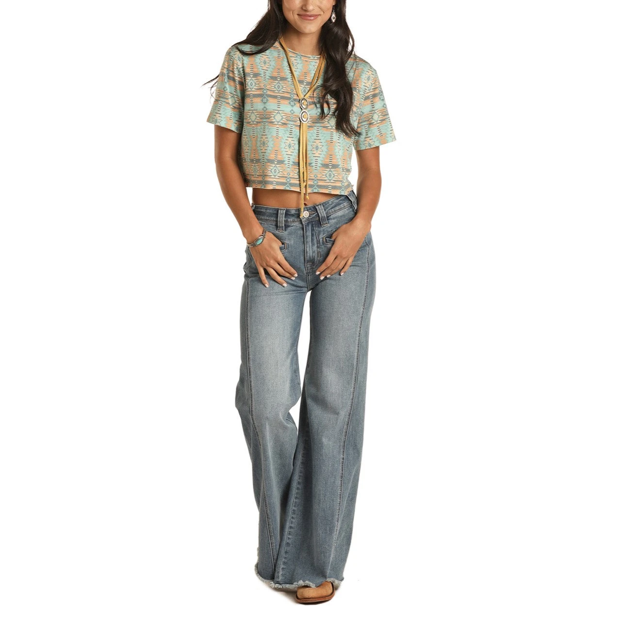 Rock & Roll Cowgirl Ladies Multi-Color Crew Neck T-Shirt 49T9917