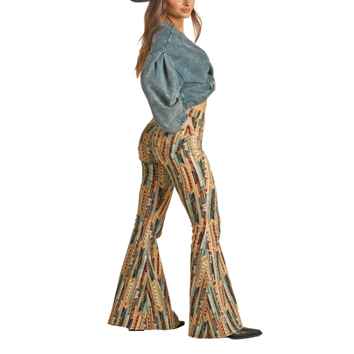 Rock & Roll Denim® Ladies Brown Aztec Bell Bottom Jeans RRWD7PR0FD