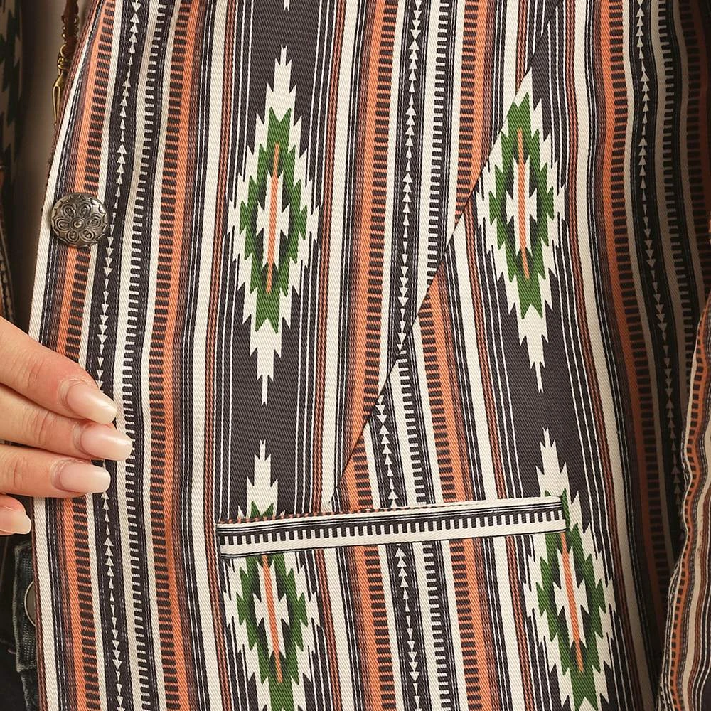 Take your look to the next level with this amazing Aztec Print Blazer from Rock & Roll!