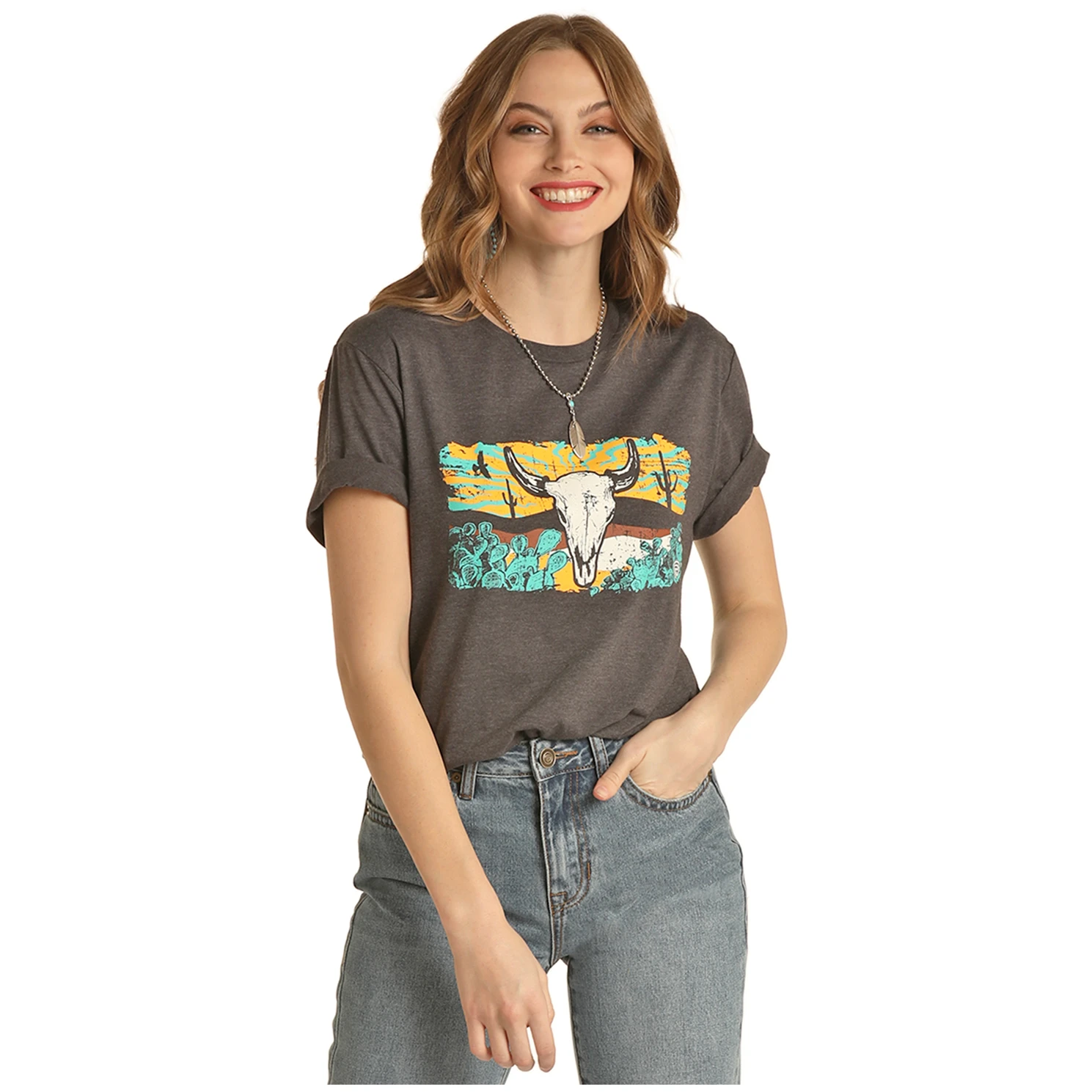Rock & Roll® Unisex Bull Skull Cactus Graphic T-Shirt RRUT21R062-02