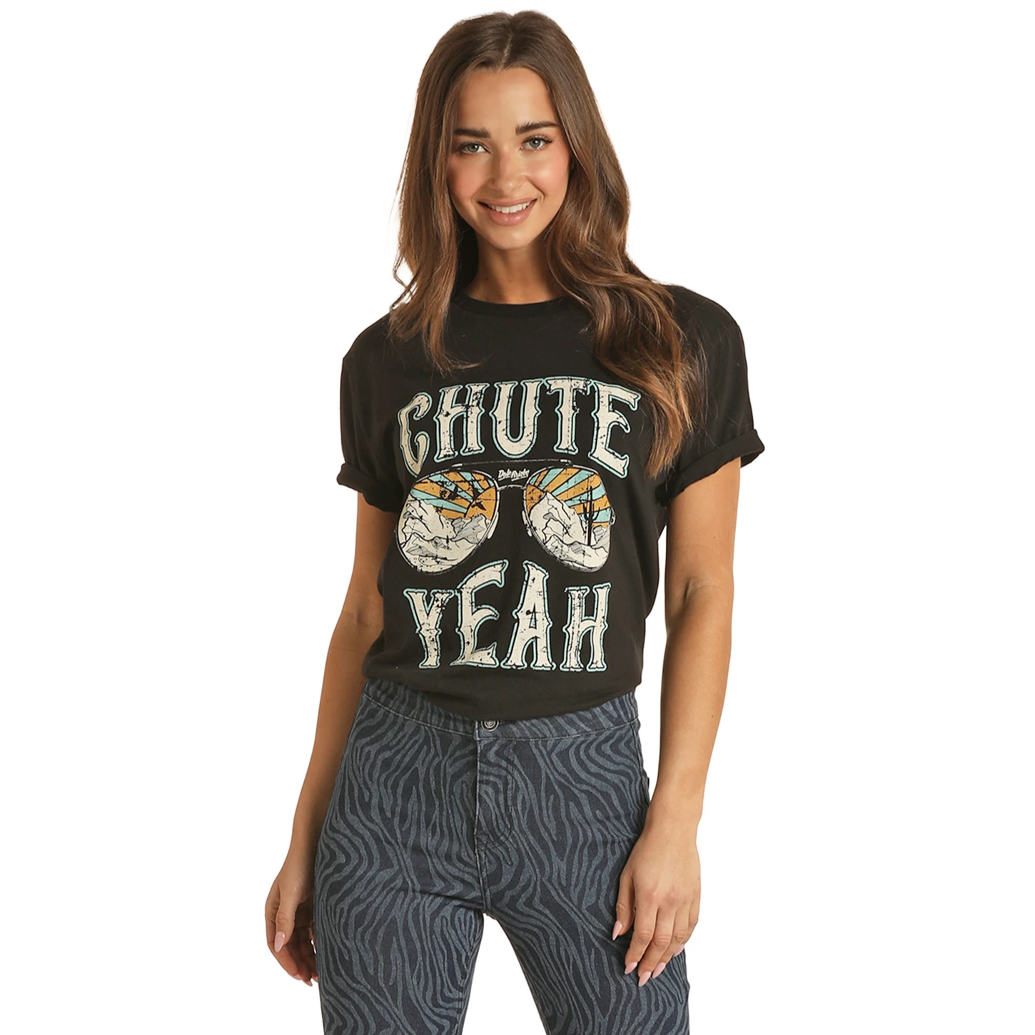 Rock & Roll® Unisex “CHUTE YEAH” Graphic Black T-Shirt RRUT21R06C-01